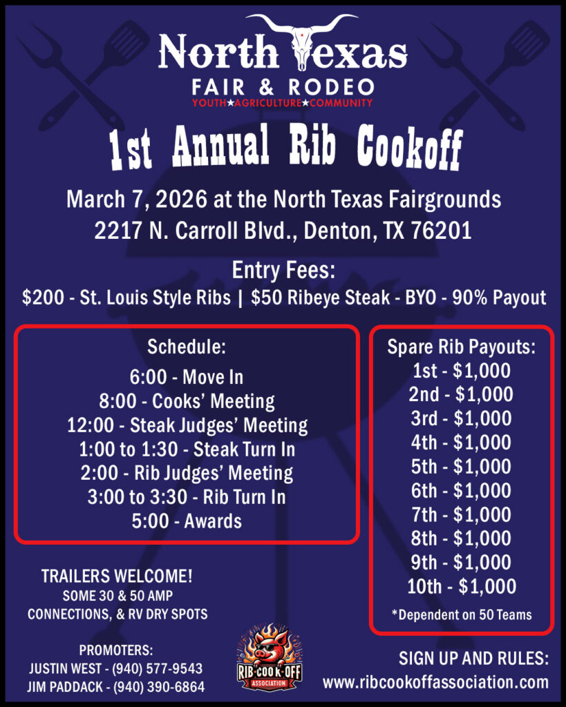 March 7, 2026 – North Texas Fair & Rodeo 1st Annual Rib Cookoff (Sanctioned by the Rib Cookoff Association)